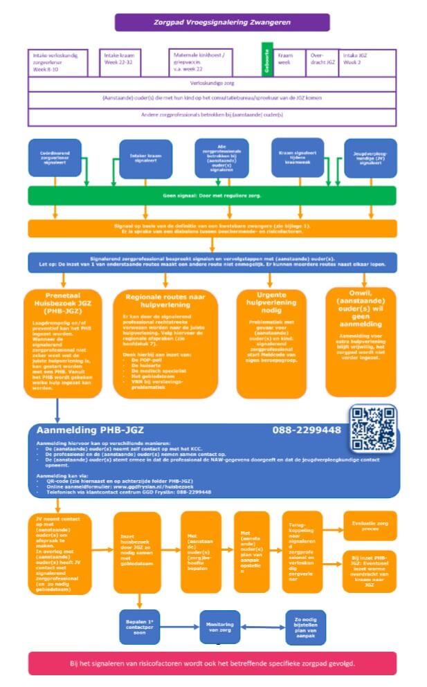 Hiervoor is het Zorgpad Vroegsignalering Zwangeren Fryslân ontwikkeld. In dit zorgpad kunnen (zorg)professionals waardevolle tips vinden voor het signaleren van kwetsbare zwangeren en het bieden van adequate ondersteuning. Ook het Prenataal Huisbezoek door de Jeugdgezondheidszorg (JGZ) vormt een onderdeel van dit zorgpad!